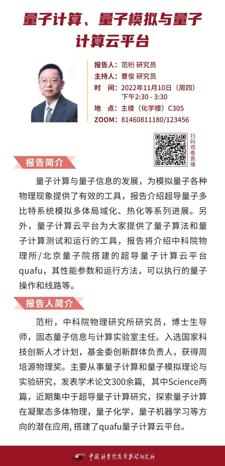 【11.10】建所50周年系列活动之高能所科技创新论坛(362)量子计算、量子模拟与量子计算云平台