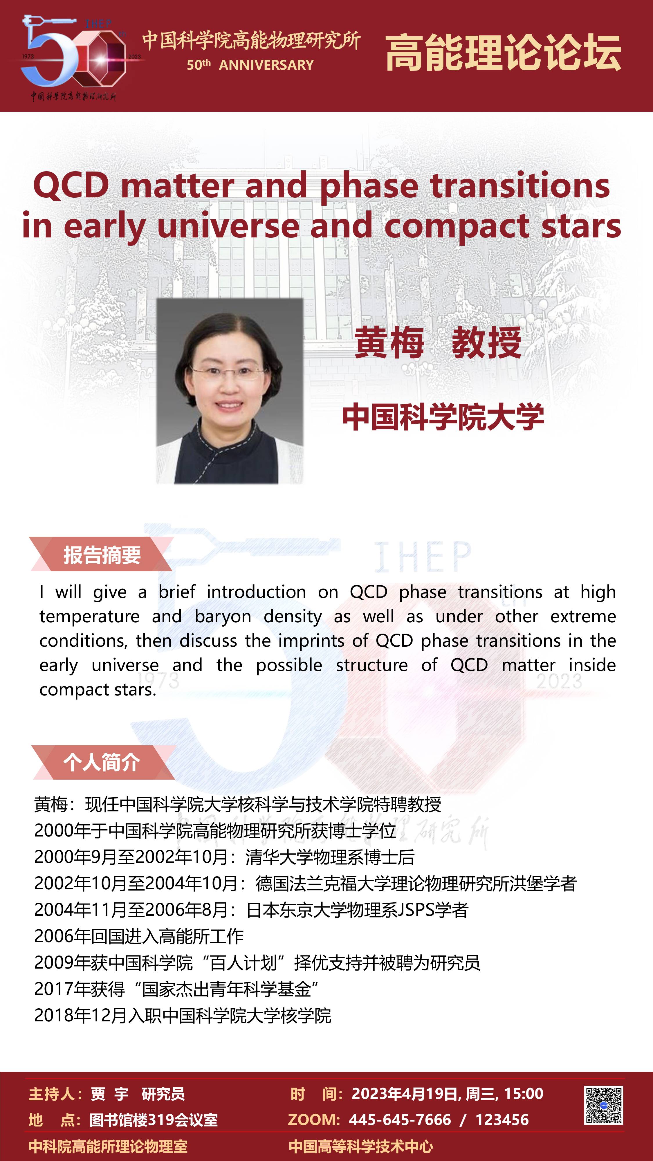 【04.19】建所50周年系列活动之高能理论论坛--QCD matter and phase transitions in early universe and compact stars