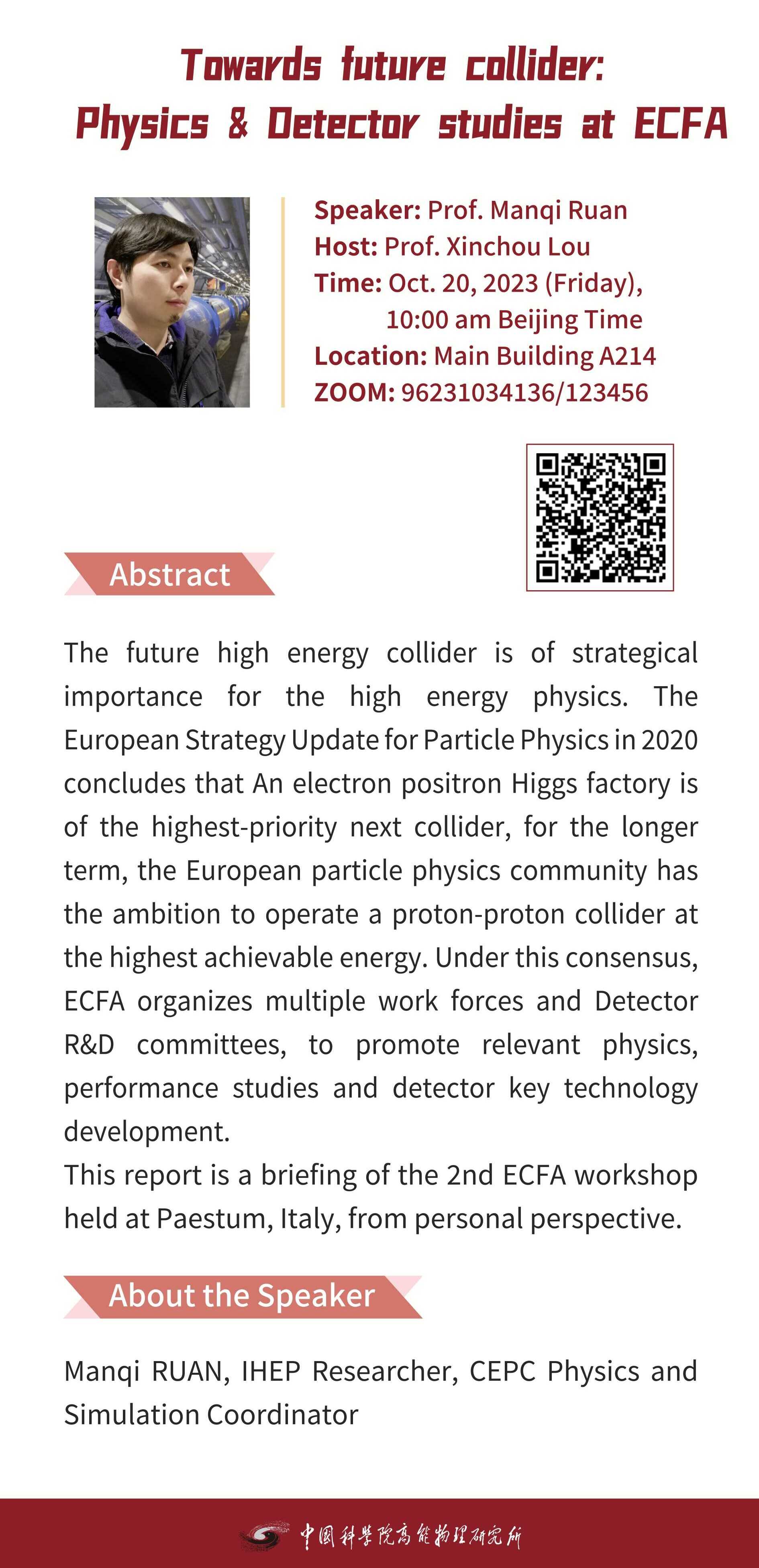 【10.20】建所50周年系列活动之高能所科技创新论坛(384)Towards future collider: Physics & Detector studies at ECFA