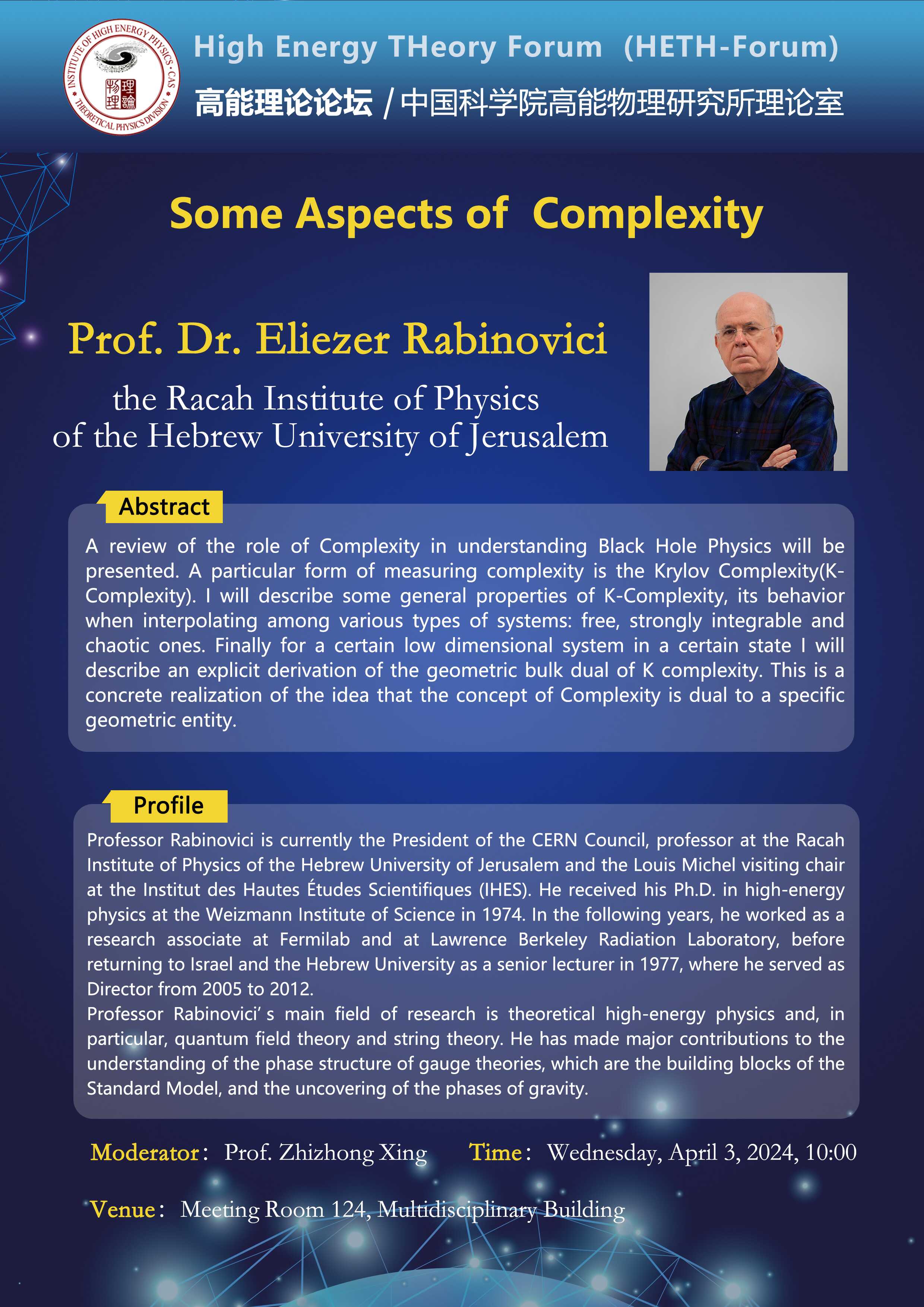 【04.03】高能理论论坛特别报告--Some Aspects of Complexity
