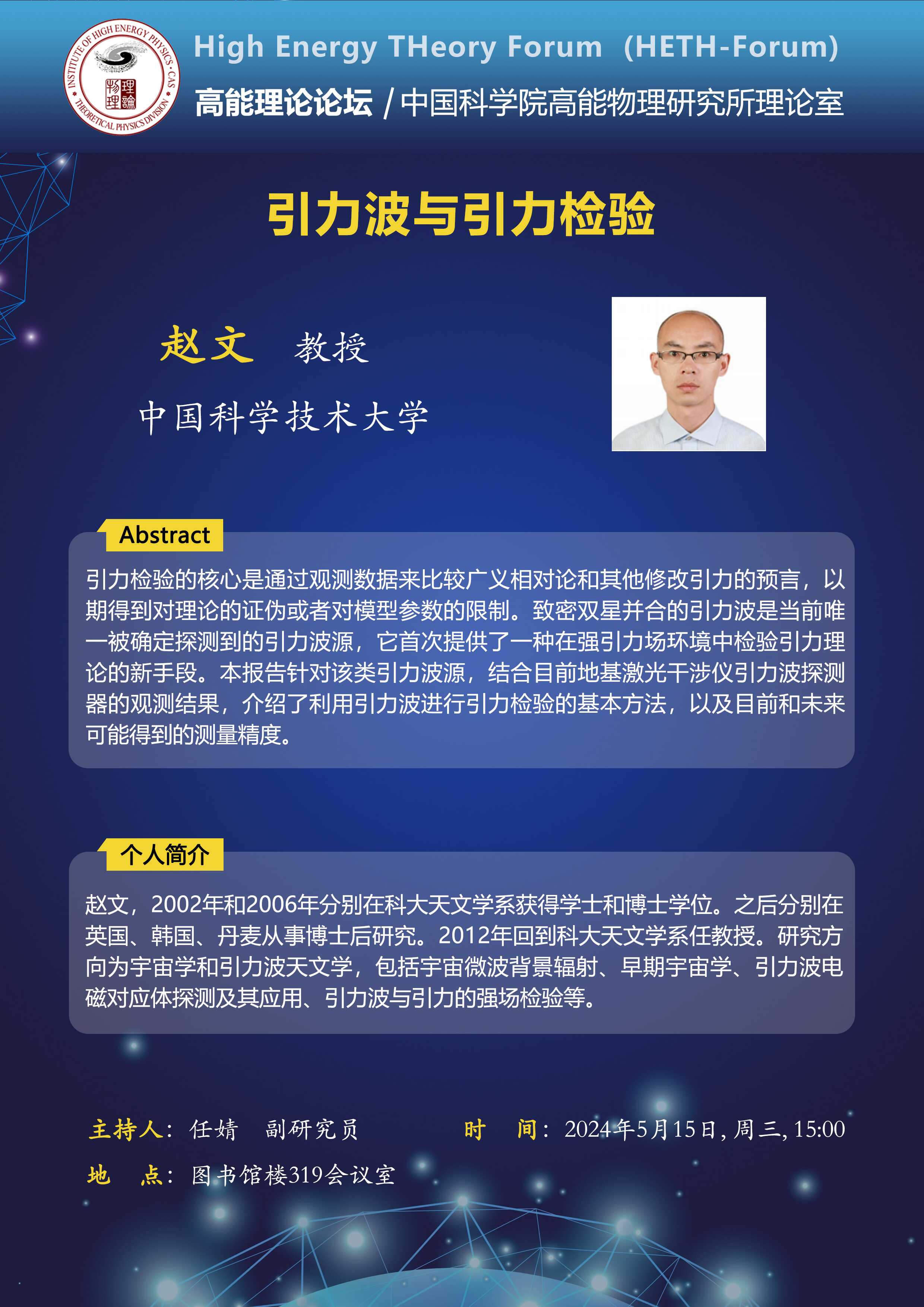 【05.15】高能理论论坛第73期--引力波与引力检验