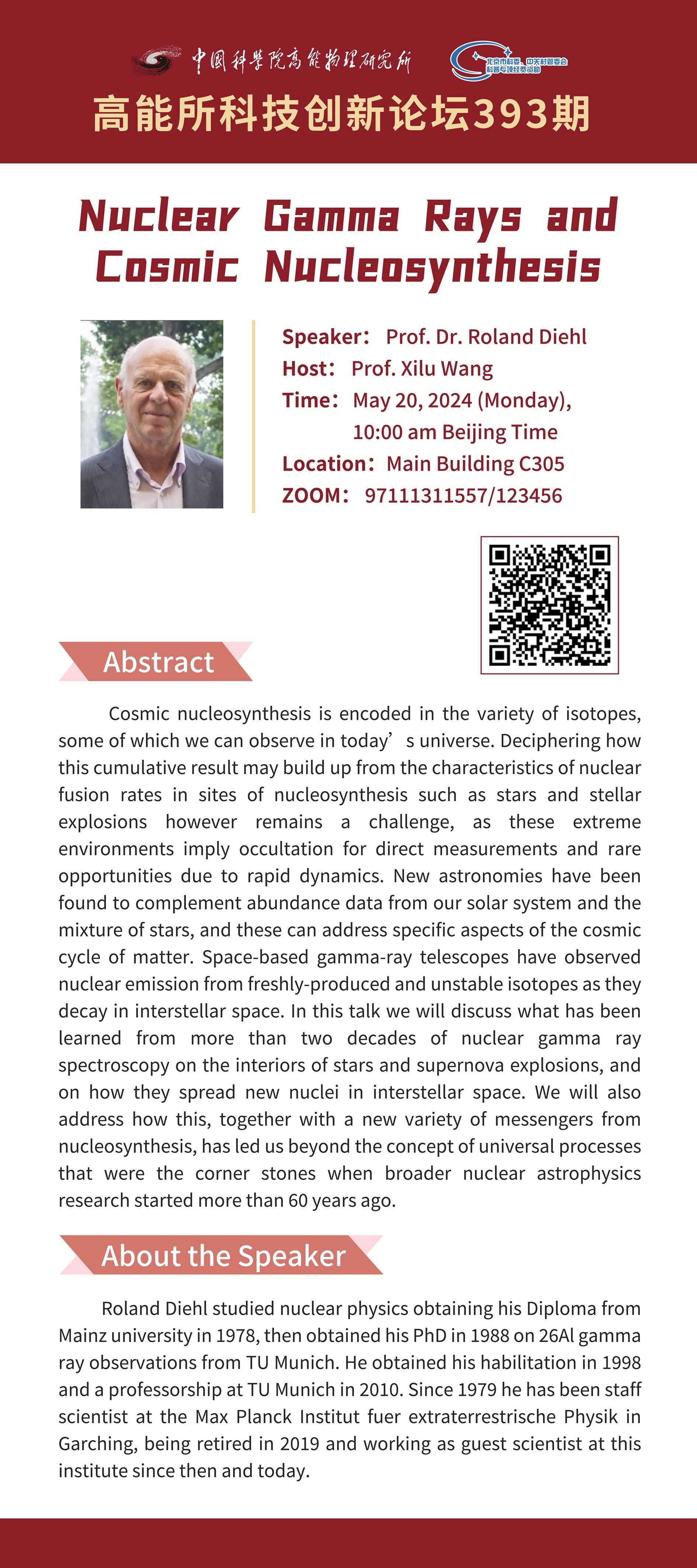 【05.20】高能所科技创新论坛(393)Nuclear Gamma Rays and Cosmic Nucleosynthesis