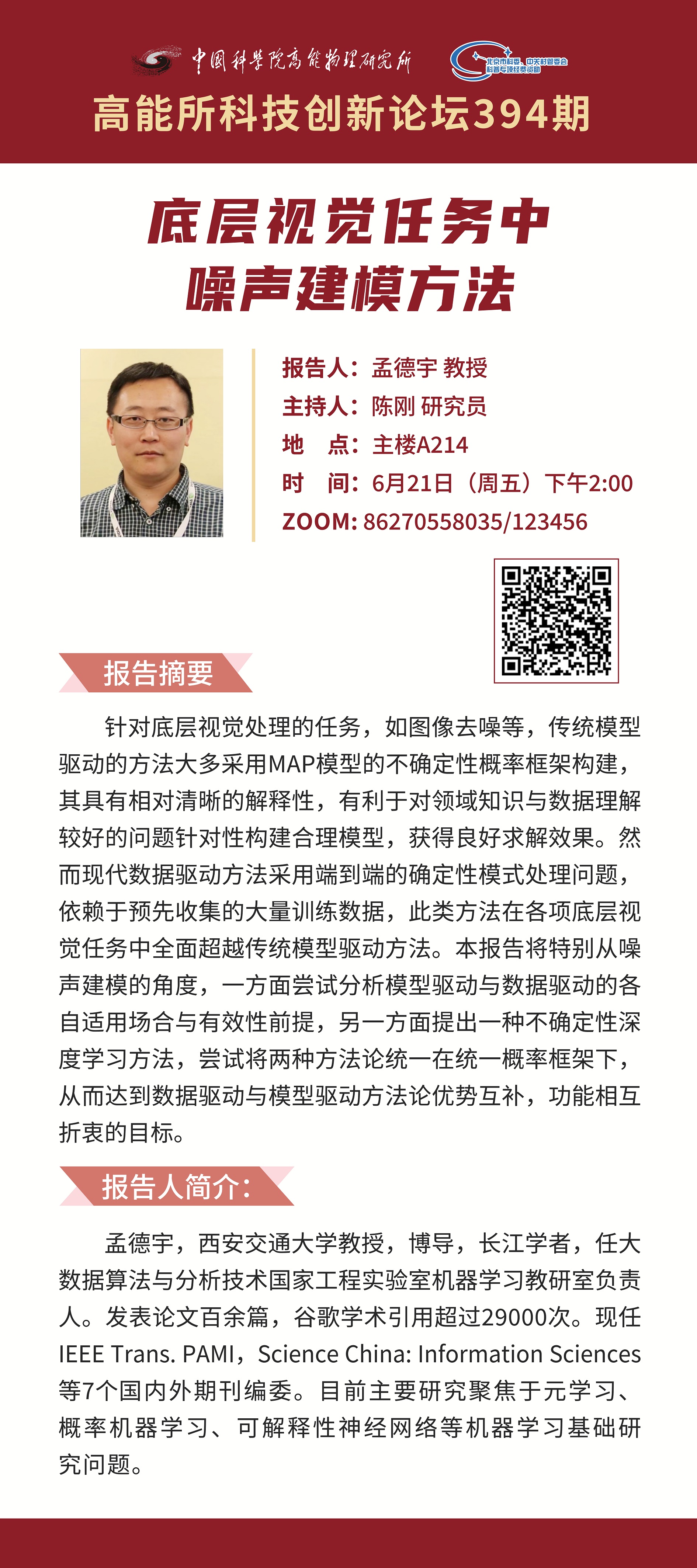 【06.21】高能所科技创新论坛(394)底层视觉任务中噪声建模方法