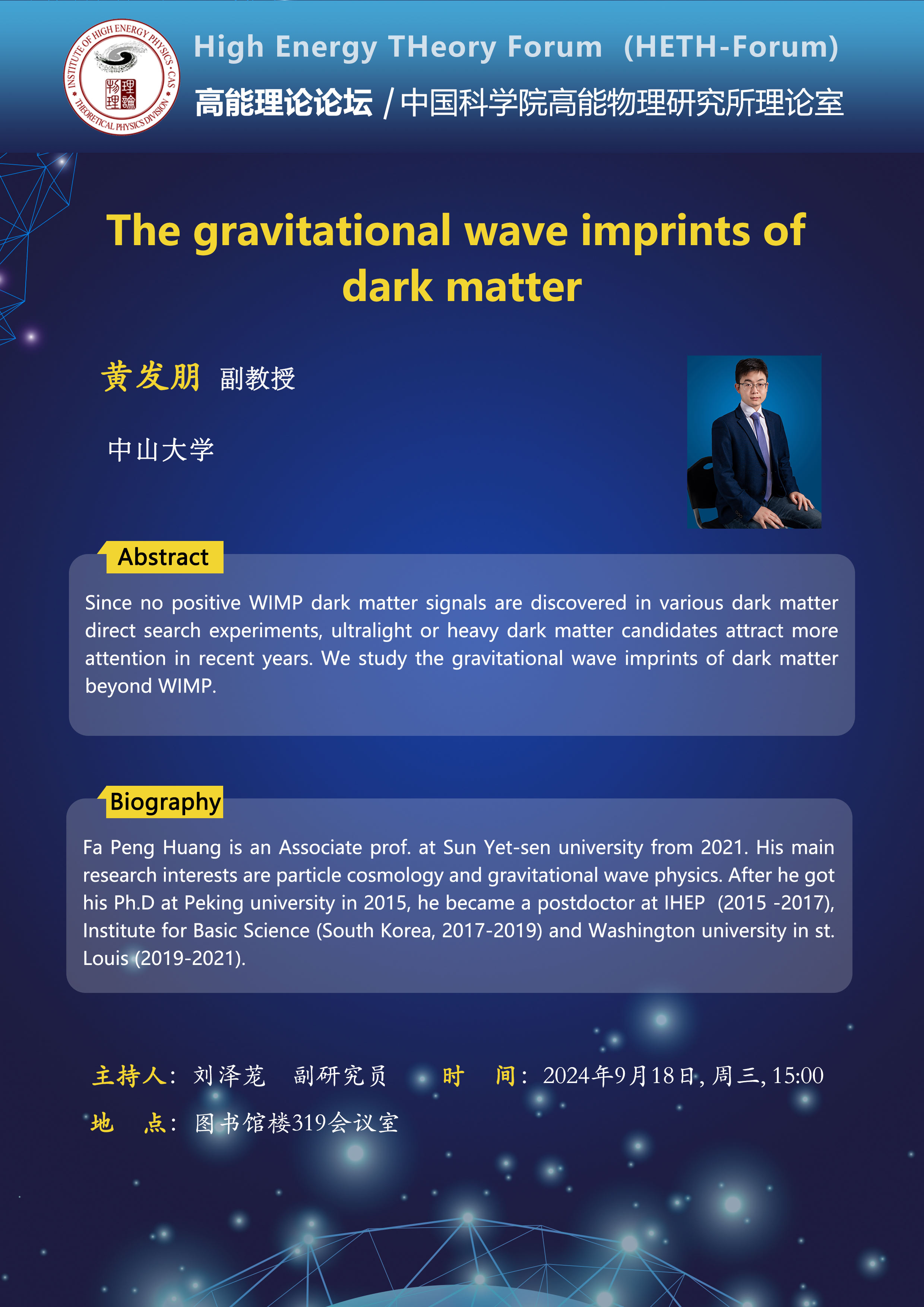 【09.18】高能理论论坛第79期--The gravitational wave imprints of dark matter