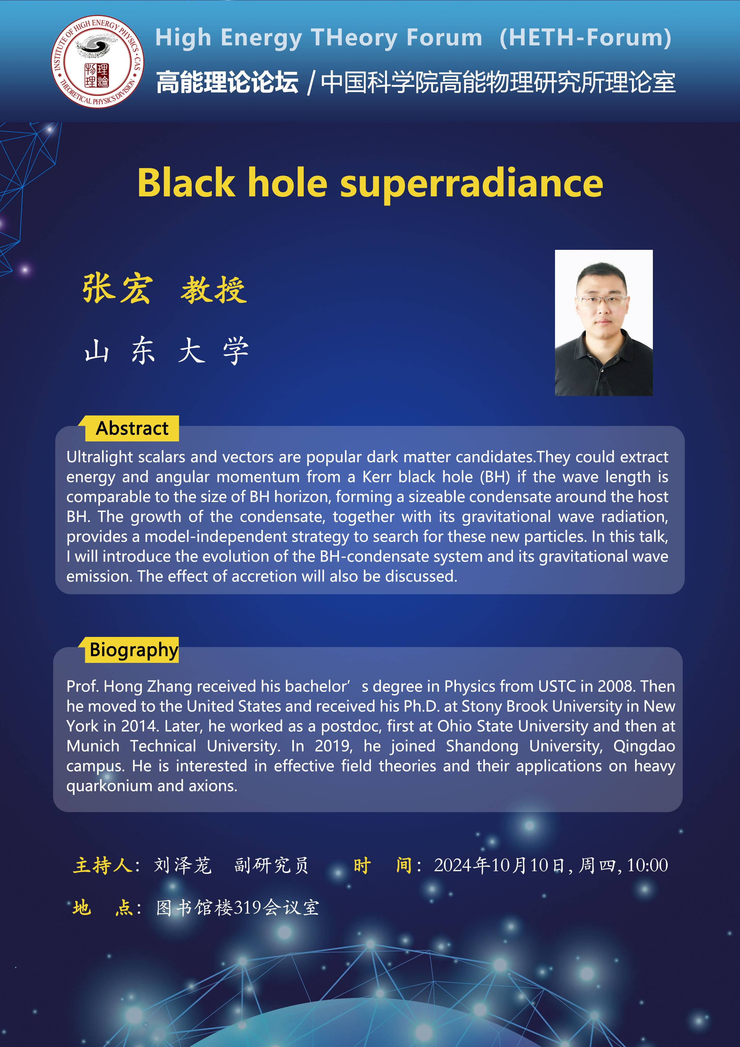 【10.10】高能理论论坛第80期--Black hole superradiance