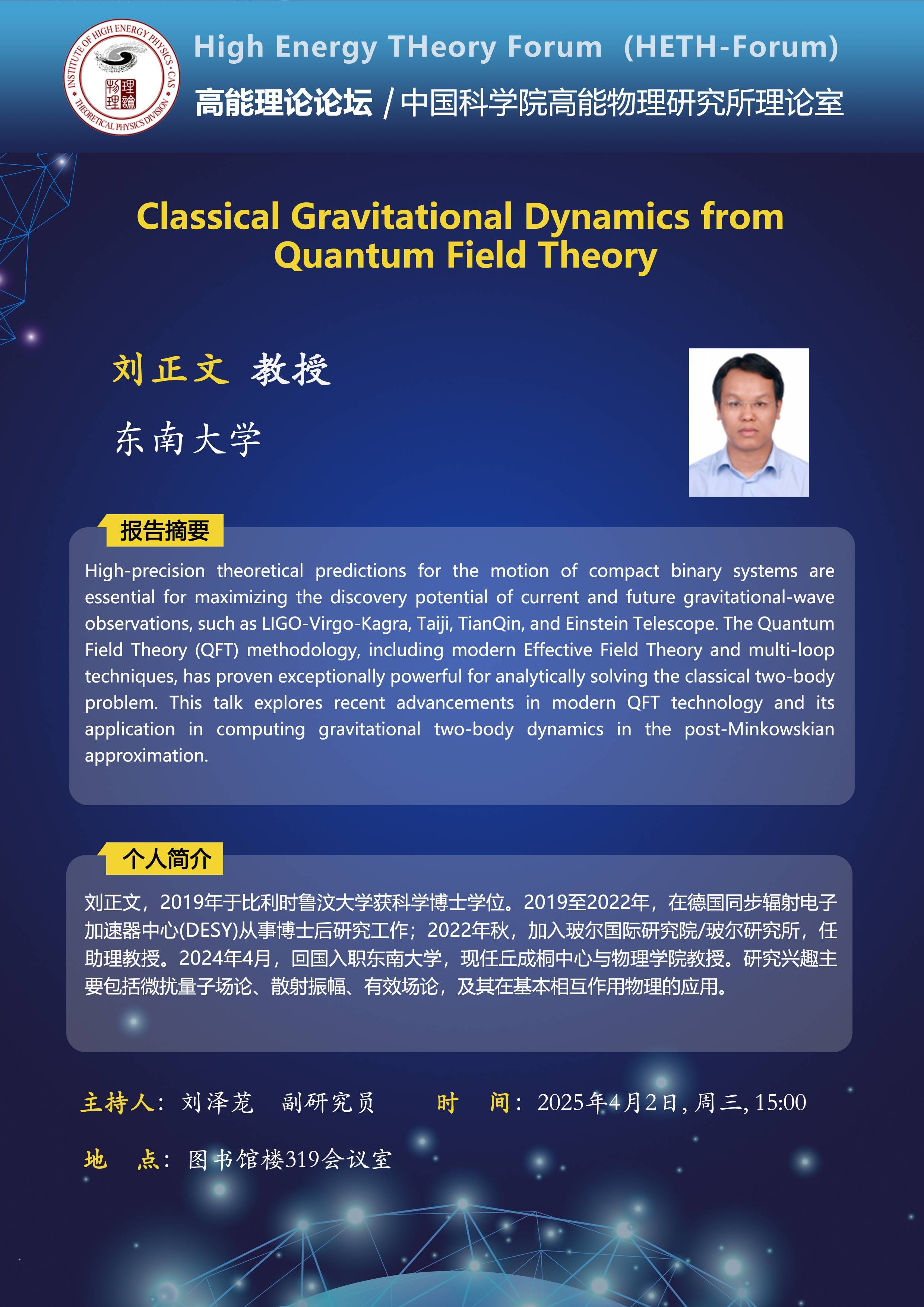 【04.02】高能理论论坛第93期--Classical Gravitational Dynamics from Quantum Field Theory