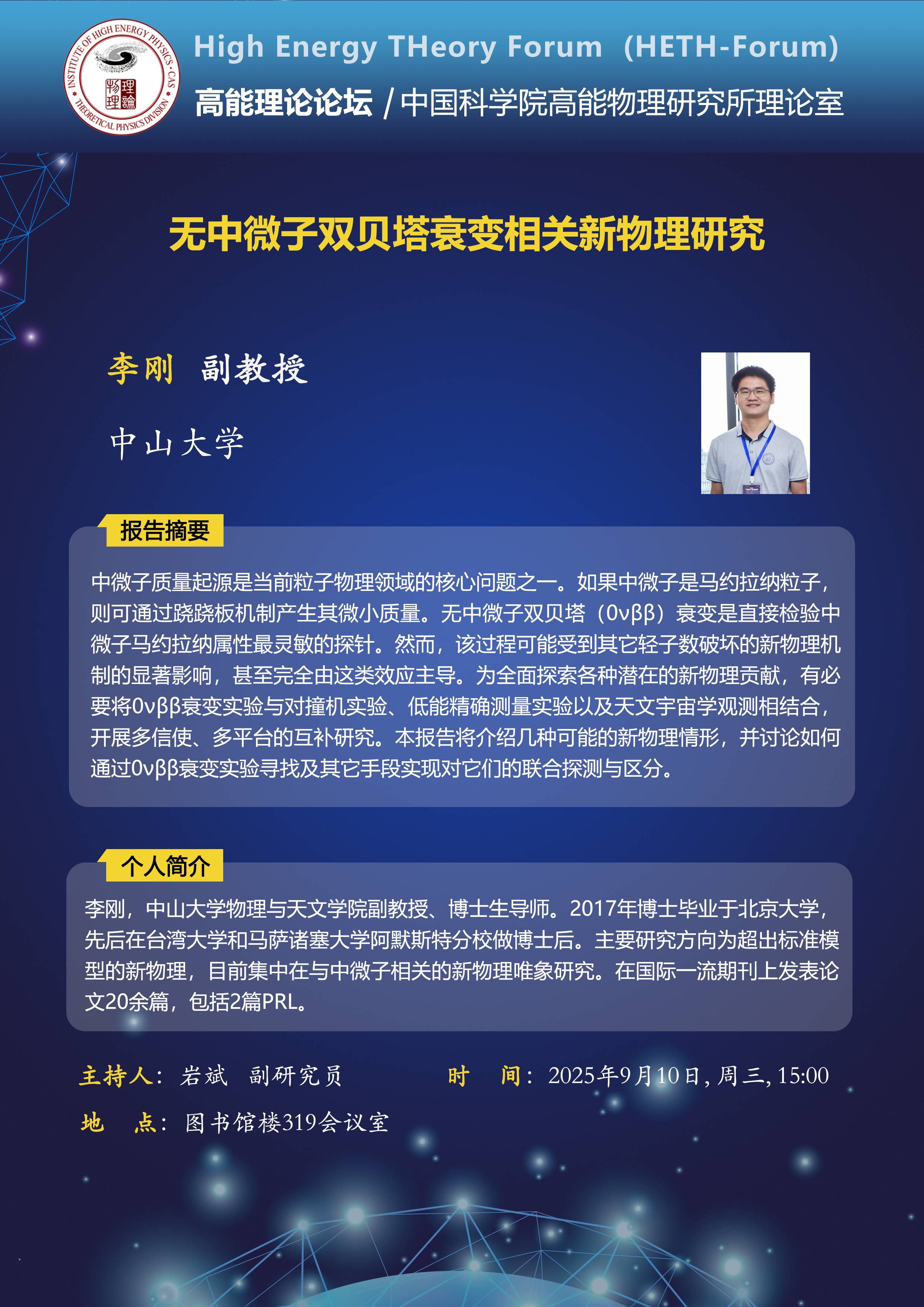 【09.10】高能理论论坛第104期--无中微子双贝塔衰变相关新物理研究