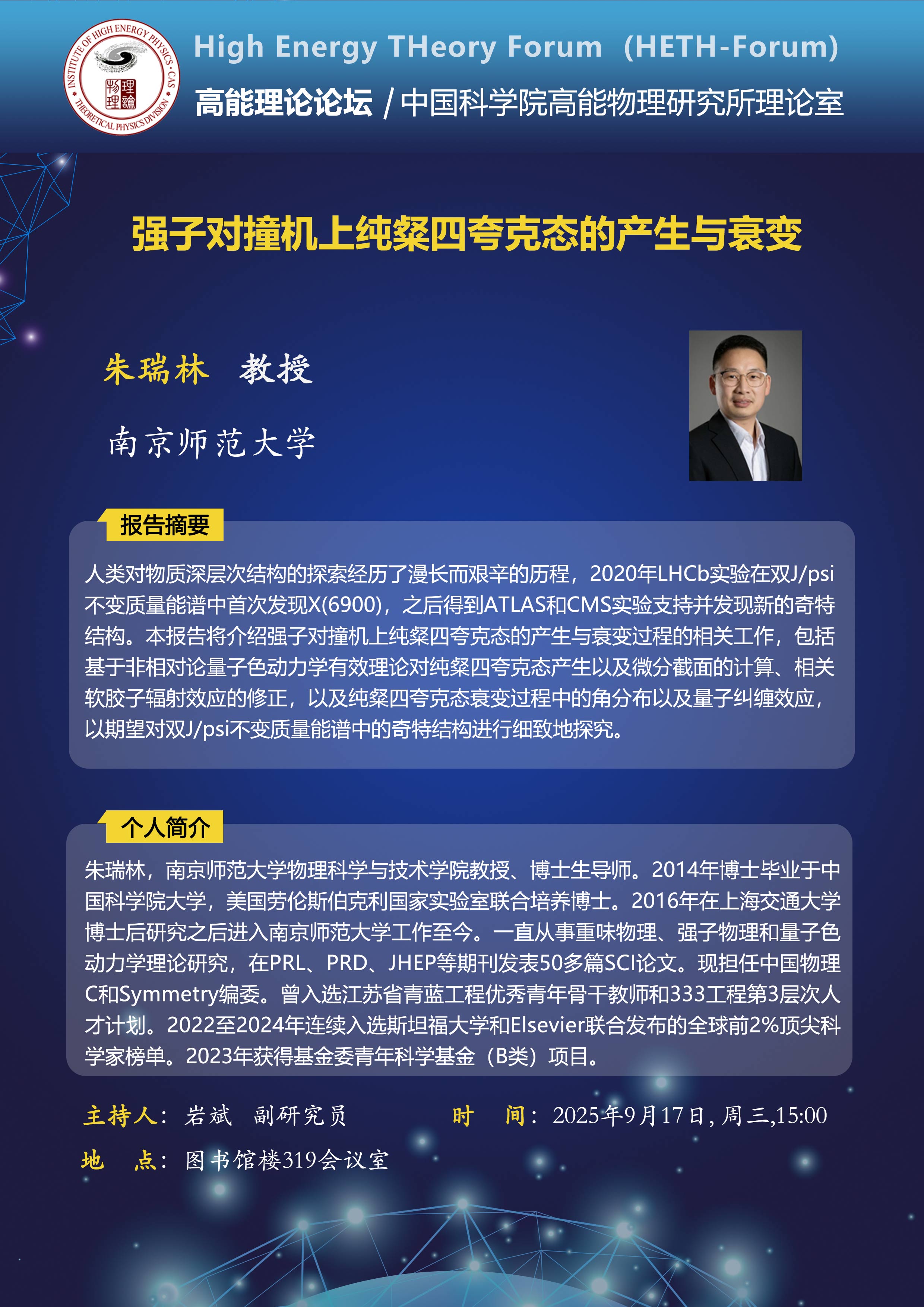 【09.17】高能理论论坛第105期--强子对撞机上纯粲四夸克态的产生与衰变