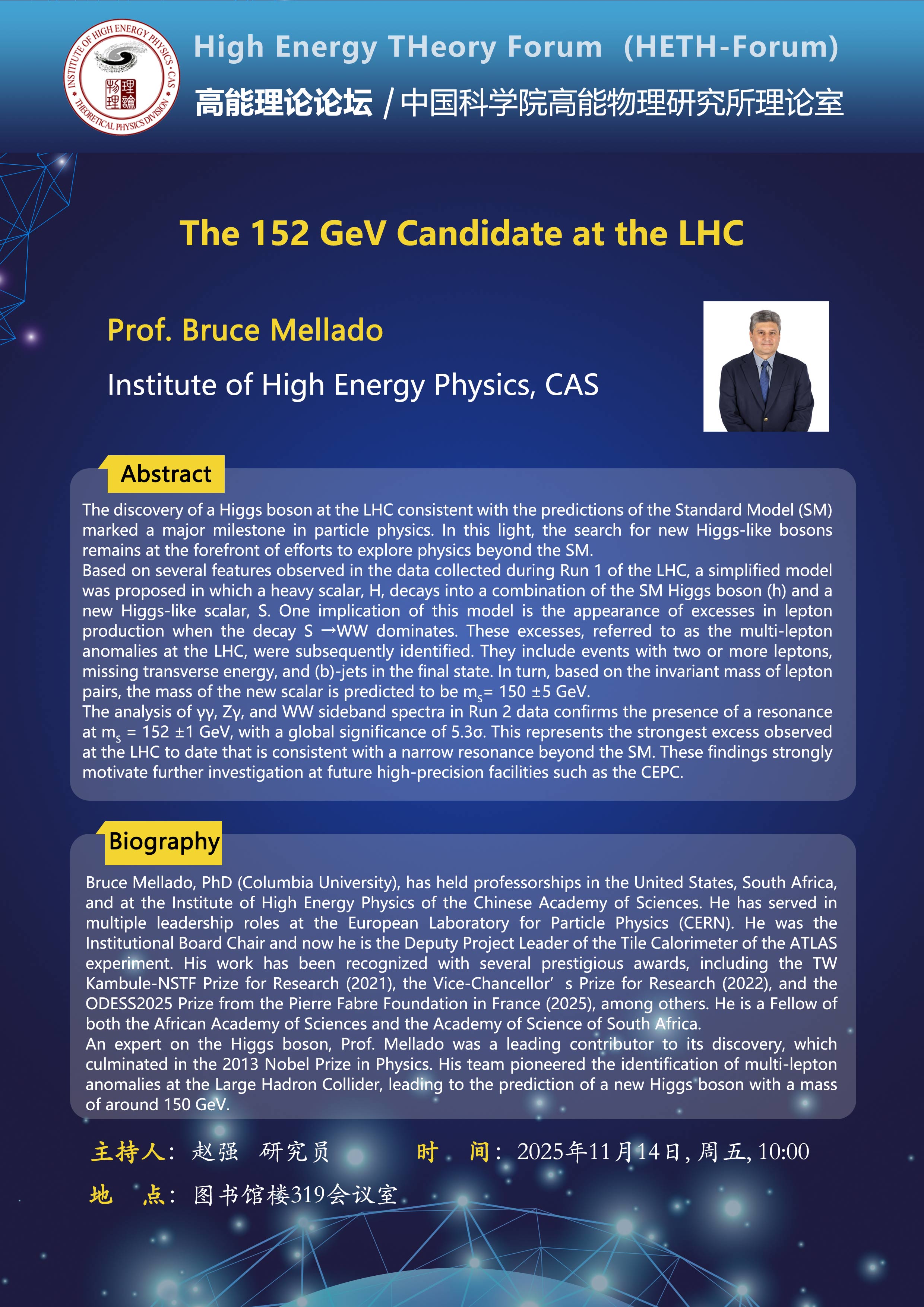 【11.14】高能理论论坛第111期--The 152 GeV Candidate at the LHC