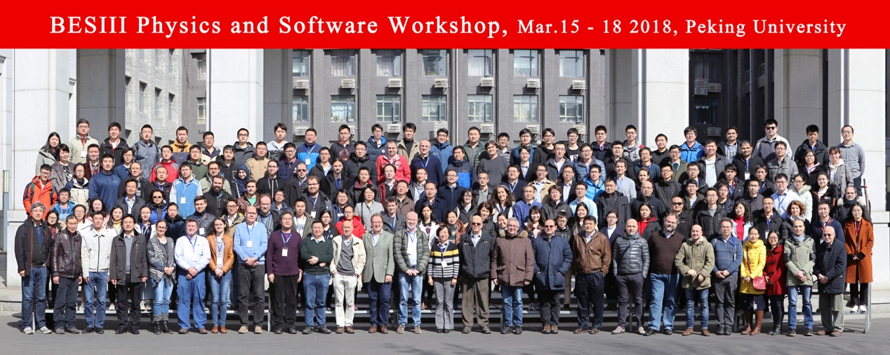 3月15至18日,2018年北京谱仪Ⅲ(BESⅢ)春季物理软件研讨会在北京大学物理学院举办。来自国内25个合作单位的代表,以及来自德国、意大利、瑞典、荷兰、美国、俄罗斯等国家的170余名学者和研究生参加了会议。会议由BESⅢ物理协调人高能所房双世研究员和中国科学院大学吕晓睿教授主持。合作组发言人高能所沈肖雁研究员宣布大会开幕,北京大学物理学院副院长朱守华教授代表北京大学致欢迎辞。