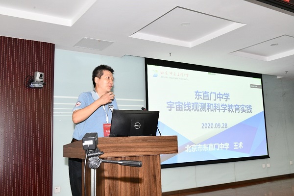 此外,大会按照议程做了如下报告:《校园宇宙线观测联盟初步工作计划》(联盟理事长张闯)、《东直门中学宇宙线观测和科学教育实践》(副理事长王术)、《探秘宇宙的奥秘》(LHAASO首席科学家曹臻)以及《校园宇宙线观测装置和科学教育》(粒子天体物理中心刘佳)。