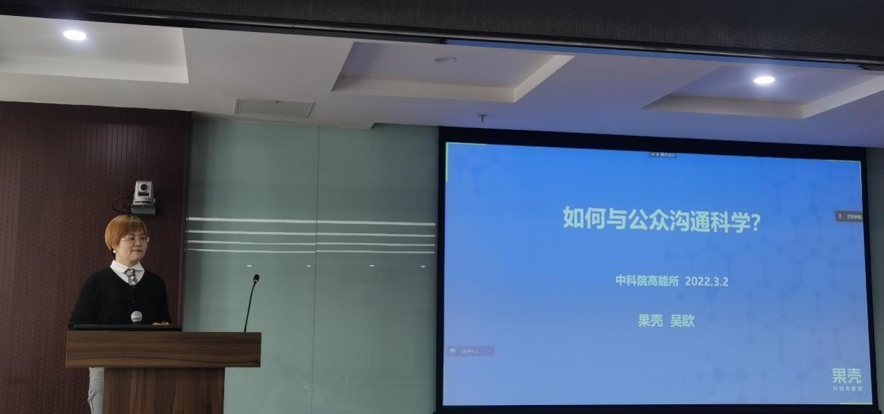 为做好高能物理学科的科普和科学传播,加强科研人员科普能力建设,办好《现代物理知识》期刊,2022年3月2日,《现代物理知识》编辑部邀请果壳网副总编吴欧做了一次专项培训—"如何与大众沟通科学?”。《现代物理知识》主编张闯、所学术委员会主任陈刚、文献信息部主任郑文莉、副主任于健以及《现代物理知识》编委、科研与管理人员等50余人通过现场及线上方式参加了培训,活动由张闯主持。
