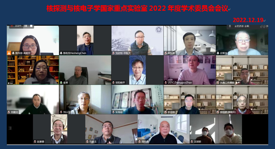 2022年12月19日,核探测与核电子学国家重点实验室(下简称实验室)2022年度学术委员会会议召开。会议采用视频会议方式召开,学术委员会主任陈和生院士主持会议。