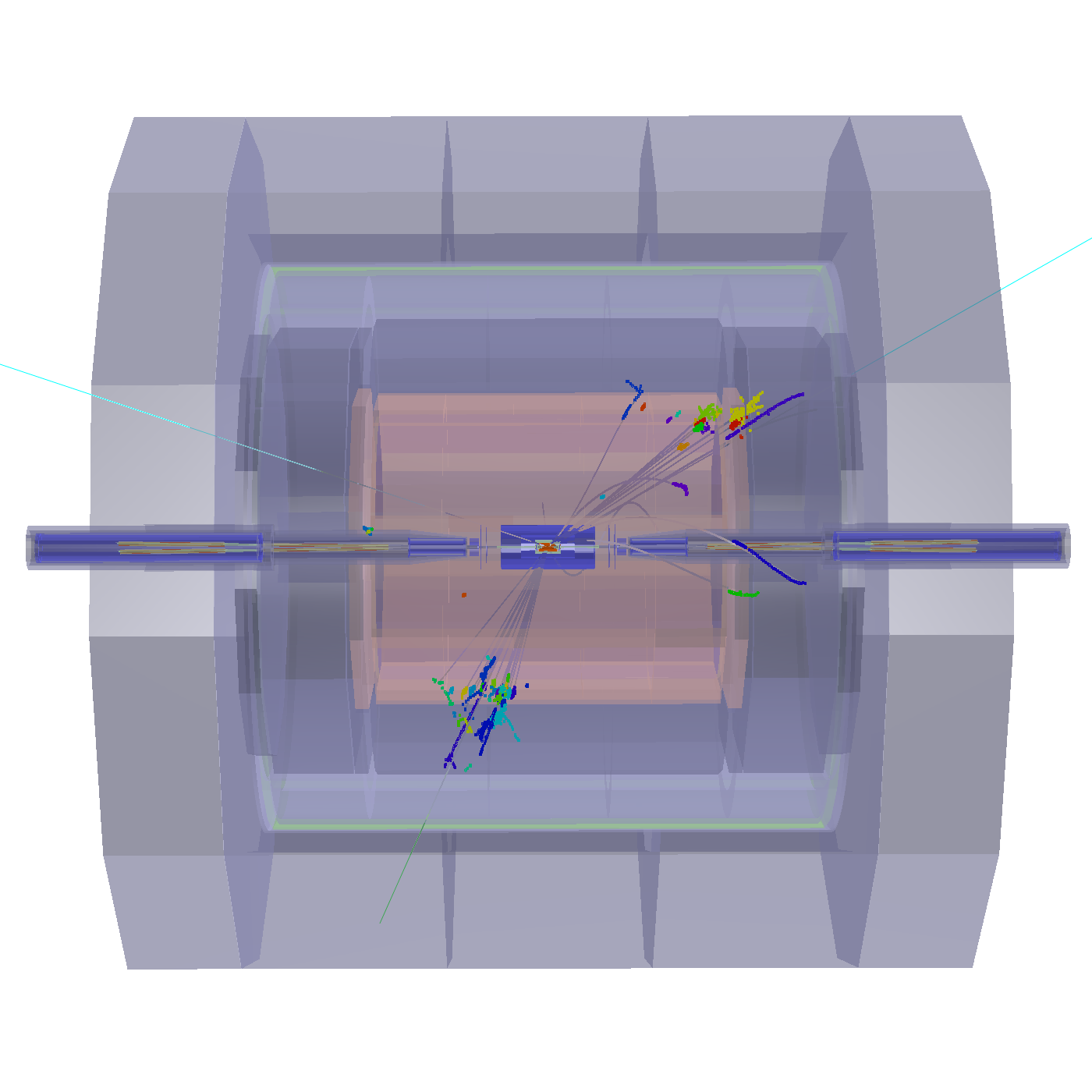 图一:环形正负电子对撞机(CEPC)中模拟的双喷注事例示意图