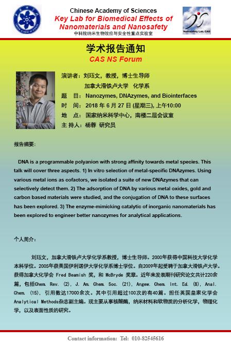 [6.27]NS Forum No. 296-刘珏文 教授, Nanozymes, DNAzymes, and Biointerfaces