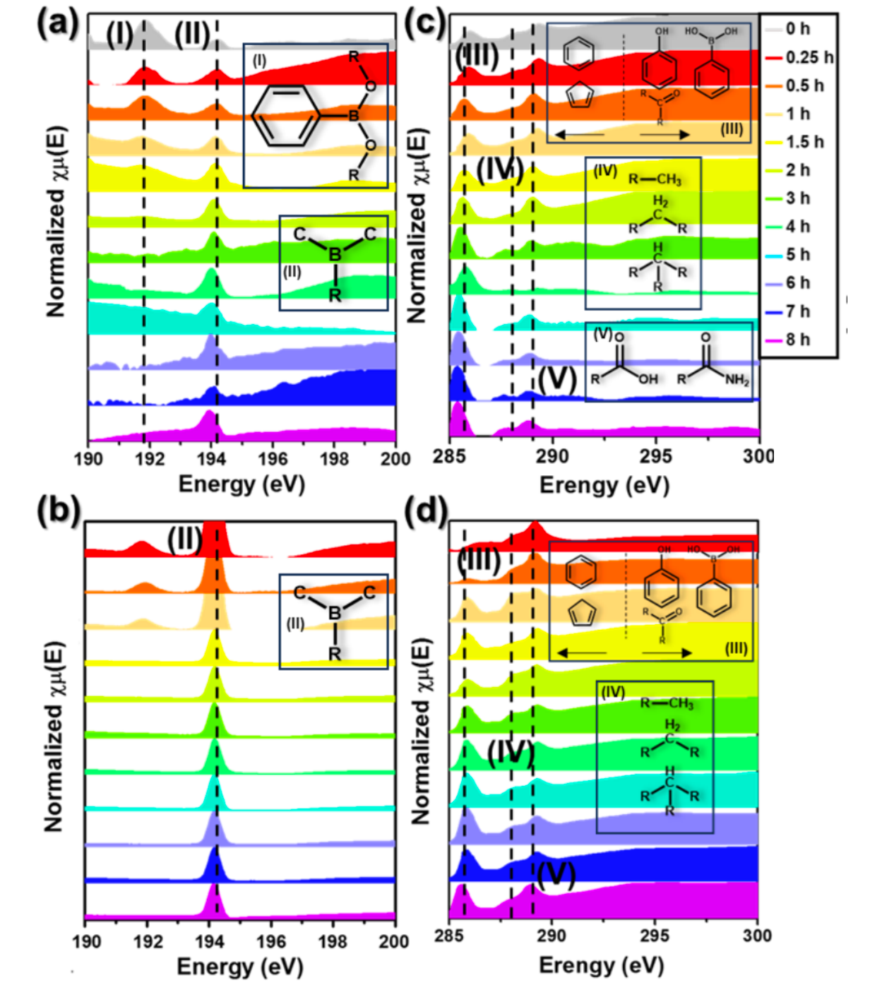 更进一步的,为了更好的解析使用这种策略合的碳点在反应过程中的变化,使用基于同步辐射X射线吸收近边结构光谱(XANES)准原位观察碳点形成过程。通过XANES允许在复杂的反应体系中随时观察碳点的结构变化,并可以根据需求分离纯化。