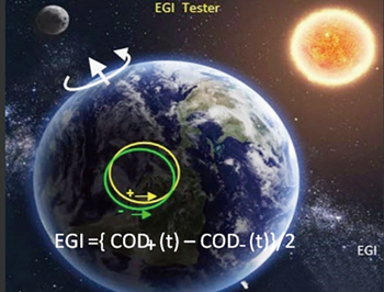 即:假设储存环中的带电粒子在储存环弯转磁铁的束缚下随地球旋转切割了月球和太阳的引力线,在储存环的粒子环路产生了引力感生电动势,计算出来发现EGI效应使得带电粒子在储存环中每转一圈的能量增加约7.5×10–4eV,以光速在储存环旋转的带电粒子积累了这个能量增量,产生了这个闭轨畸变。使用了欧洲LEP、日本Spring8和美国APS实验室的3个储存环发表的束流数据,对模型中的引力与电磁耦合系数进行估算,得到其上限值为