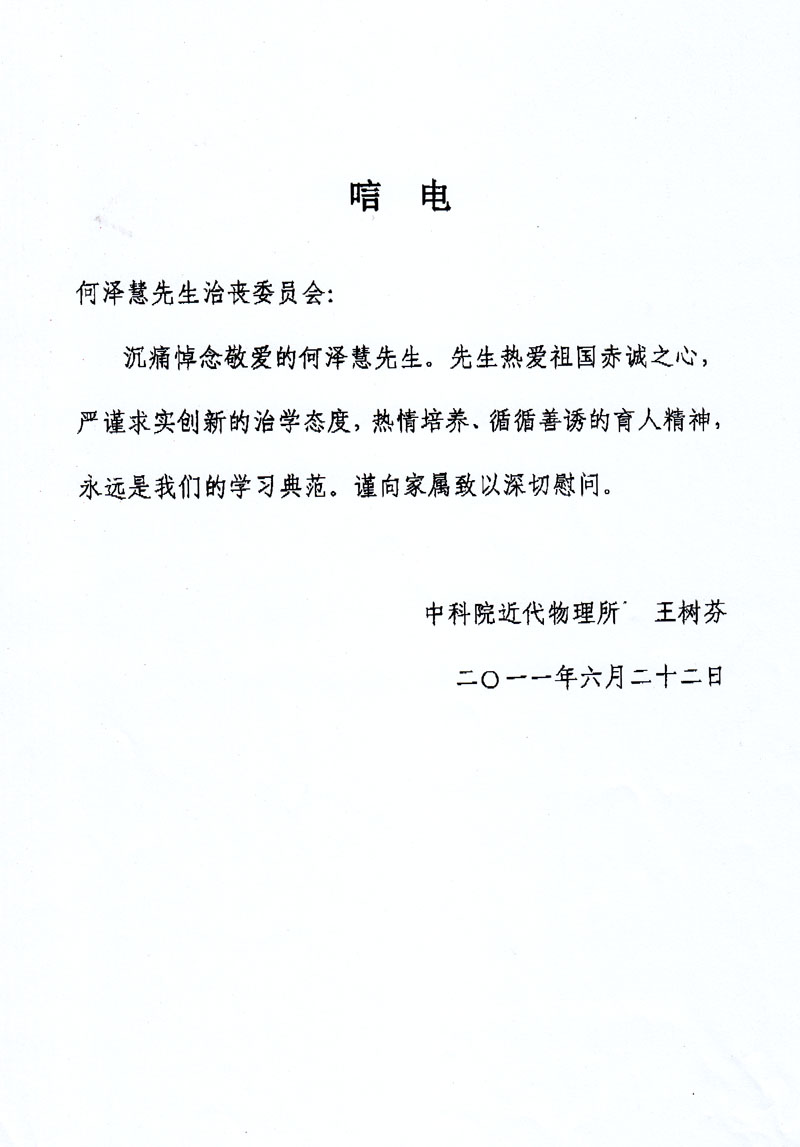 王树芬唁电