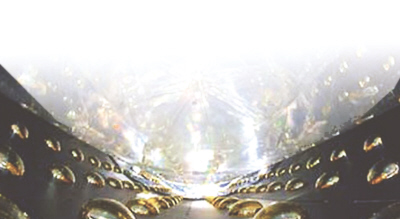 这是在没有灌装闪烁液之前的圆柱形反中微子探测器内部照片。该探测器用于捕捉反中微子产生的微弱闪光。高灵敏的光电倍增管排列在探测器的壁上。